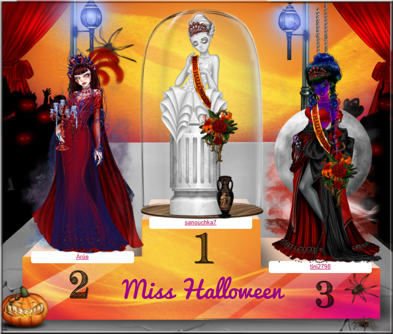 Coucou! Félicitations pour ta place sur le podium d'Halloween! Tu as une bimbo très élégante et j'adore les tons que tu as su mettre en valeur. Bravo!