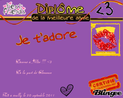 je t'adore ma copine la plus belle de toute les bimbo ma meilleure copine adorable gentille belle je t'adore ! :) bonne continuation !!!!!