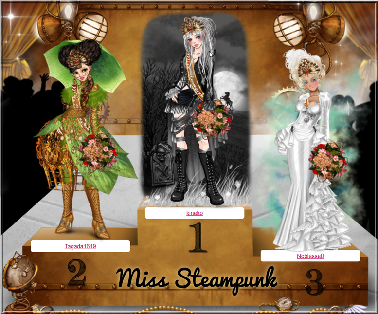 kineko merci a toutes celles qui m'ont offert le podium steampunk suis tres touchée MERCI infiniment